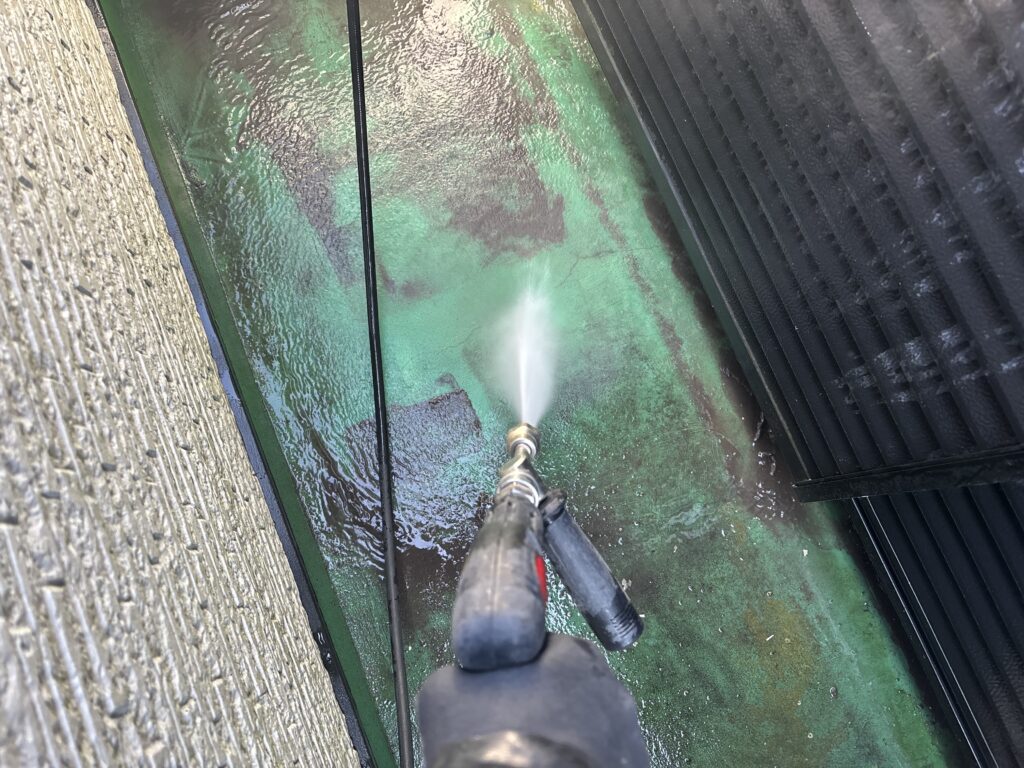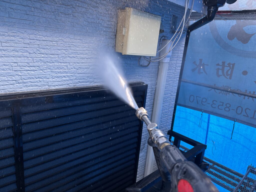 高圧洗浄はとても大切な作業で、ゴミや苔やチョーキングの粉など付いていると